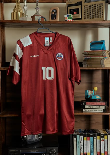 La camiseta chilena corresponde al ciclo previo al Mundial de 1994, un torneo en el que la selección no participó debido a la suspensión impuesta por la FIFA. Aunque nunca se usó en una Copa del Mundo, esta indumentaria forma parte del imaginario noventero del equipo. Su diseño rescata el rojo característico de la selección, acompañado de detalles en azul y blanco, y se presenta como una reedición fiel al espíritu original, con confección moderna.