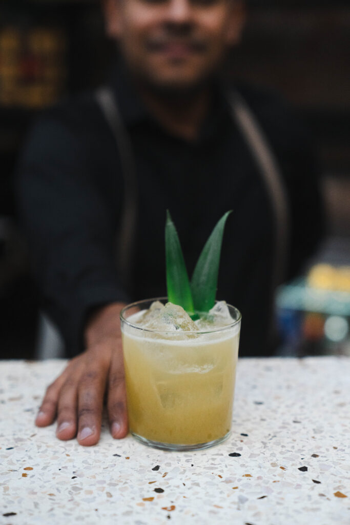 Preparación: Agita todos los ingredientes con hielo, sirve en un vaso Old Fashion con hielo y decora con una rodaja de jalapeño o piña. ¡Lista para disfrutar!