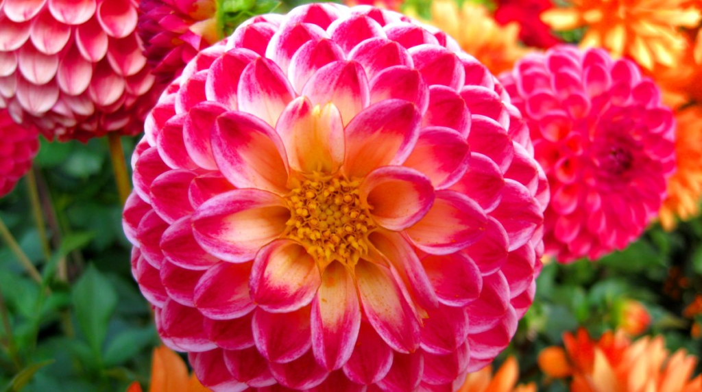 Como flor nacional de México, la dahlia aporta un toque patriótico al altar. Sus colores intensos y textura suave representan emociones como el amor (rojo), la pureza (blanco) y el duelo (violeta). Además, ayudan a iluminar el camino de regreso para las almas.