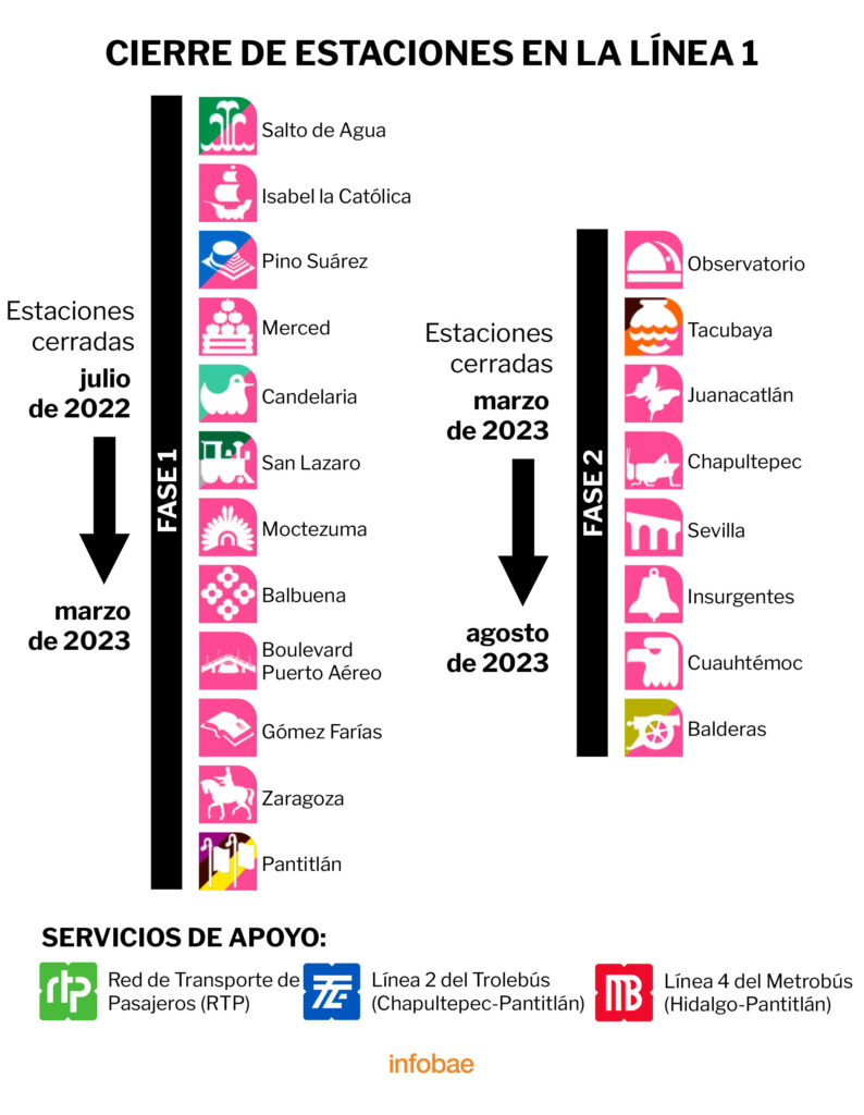 Ese día, los trenes concluirán operaciones a las 22:00 horas, dos horas antes del horario habitual, mientras que la última salida desde las terminales de Pantitlán y Chapultepec será a las 21:30 horas, durante las dos horas siguientes, los traslados se realizarán mediante autobuses de la Red de Transporte de Pasajeros (RTP), que cubrirán el mismo recorrido de la línea rosa para no afectar a los usuarios que regresen a casa.