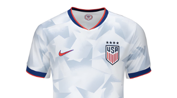 El jersey de Estados Unidos, diseñado por Nike, utiliza una base blanca con franjas azules y rojas en diagonal, evocando la bandera nacional. El diseño apuesta por un estilo moderno y dinámico, pensado para conectar con las nuevas generaciones de aficionados. La camiseta refleja el espíritu competitivo y la diversidad cultural del país anfitrión.