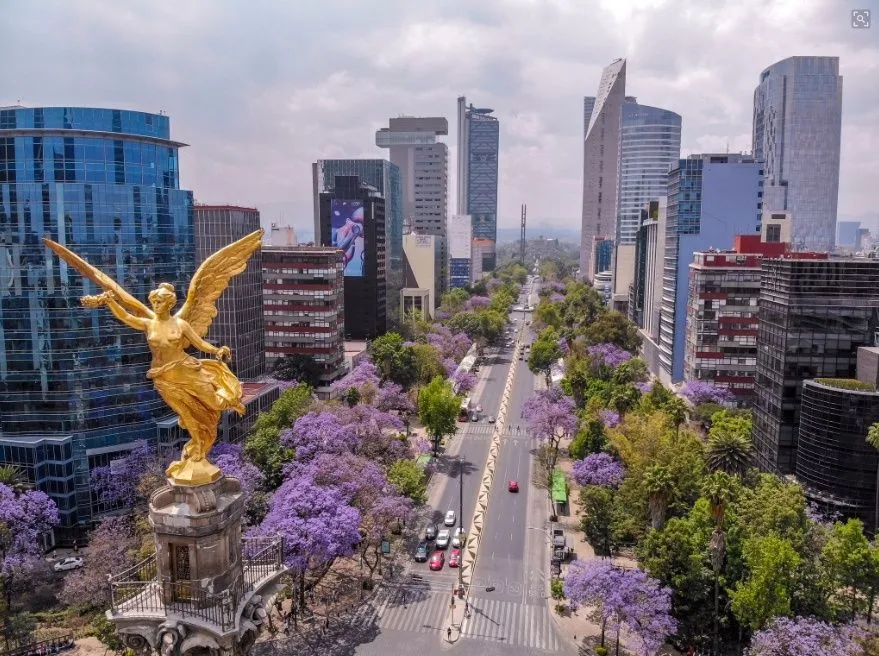 - Un teporingo gigante hecho con flores, acompañado por las jacarandas que caracterizan la primavera capitalina.