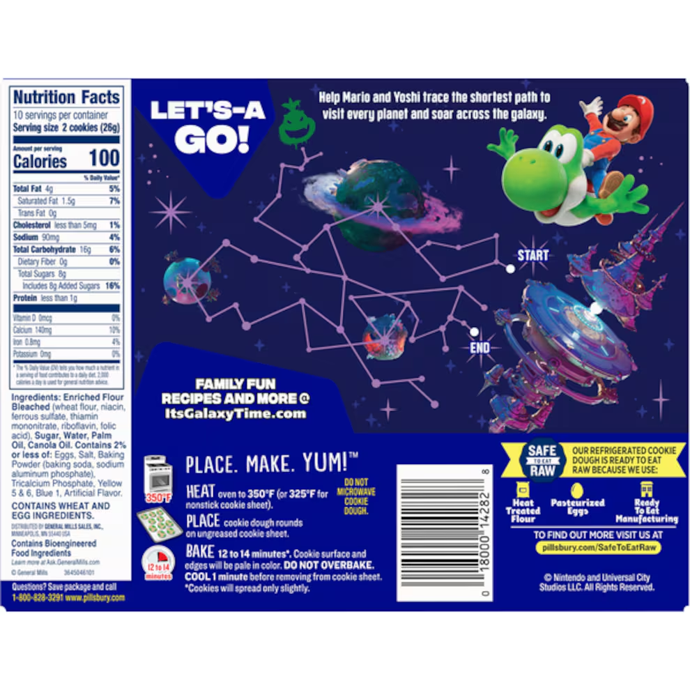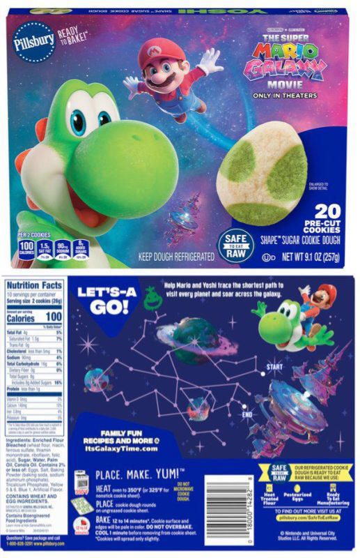 La revelación ocurrió gracias a un producto promocional de Pillsbury: una masa para galletas con forma de huevos de Yoshi. El empaque, que apareció en la cadena de supermercados Tops en EE. UU., incluye ilustraciones del personaje y elementos clave del universo Galaxy, como el Observatorio Cometa y un grafiti con el rostro de Bowser Jr., lo que sugiere su participación en la historia.